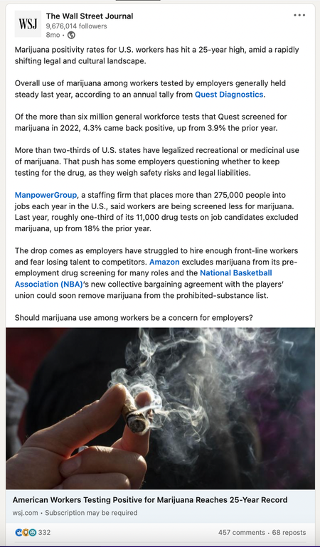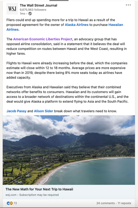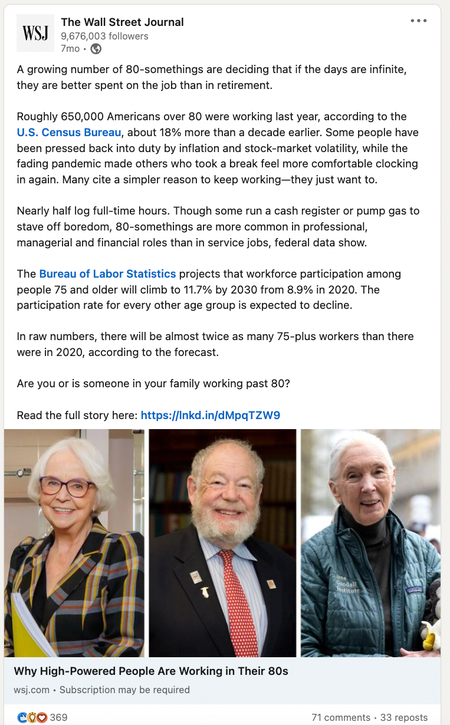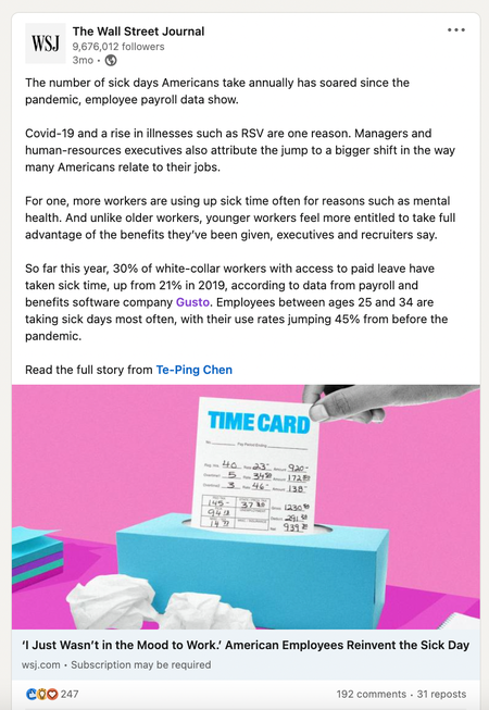 Carefully crafted long LinkedIn posts for stories focusing on the workplace, careers and the economy, targeting a variety of audiences and prompting interaction with our content.