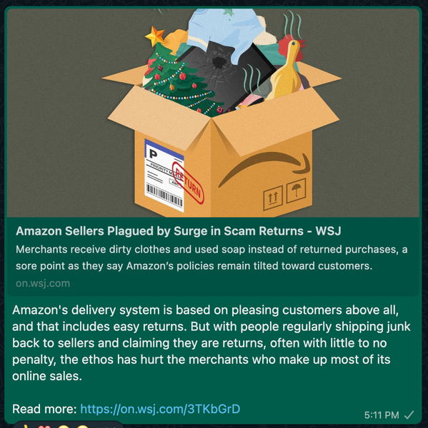 I translated compelling and consumer-focused stories into X Threads to provide readers with a preview of WSJ's journalism, highlight powerful images and quotes and offer them an opportunity to engage with our content. Click each item below.